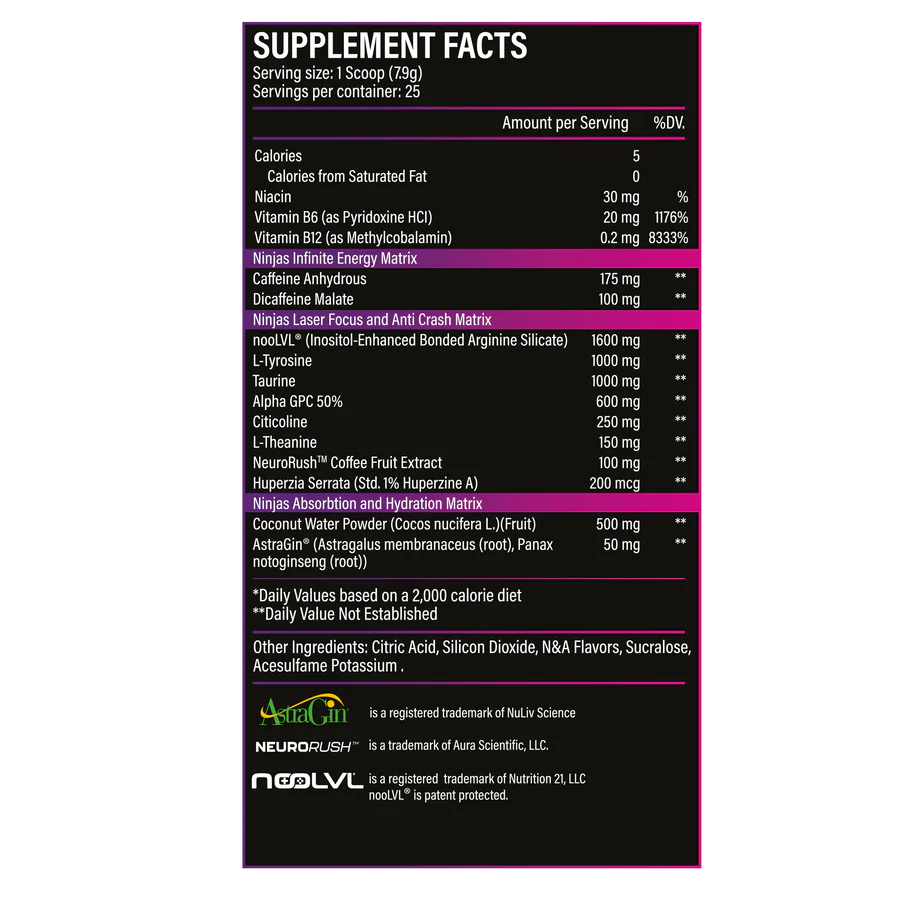 Love this product gives me a clean energy and focus without the crash. It mixes well and the shinobi sherbert is delicious. I also like that Ninia put hydration ingredients in this product.