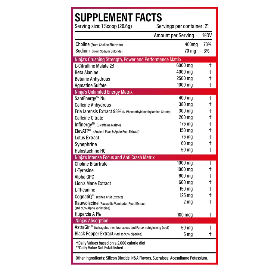 I’ve been in the Pre Workout game since 2005 with the OG No Xplode… before Jack3d even existed… I’ve tried every Pre workout supplement out there… I have done my research, and know what makes up a LEGIT Pre workout supplement… DOSAGES is what is often overlooked…. Ninja is by far one of the best companies in this space. Some may look at the label and think this is going to be far too stim-heavy. The team at Ninja blended this PERFECTLY. It certainly hits HARD, but not leaving you jittery, nauseous or any of the negatives that a typical High-Stim Pre Workout supplement may have. Well done Ninja! I’ll be back!